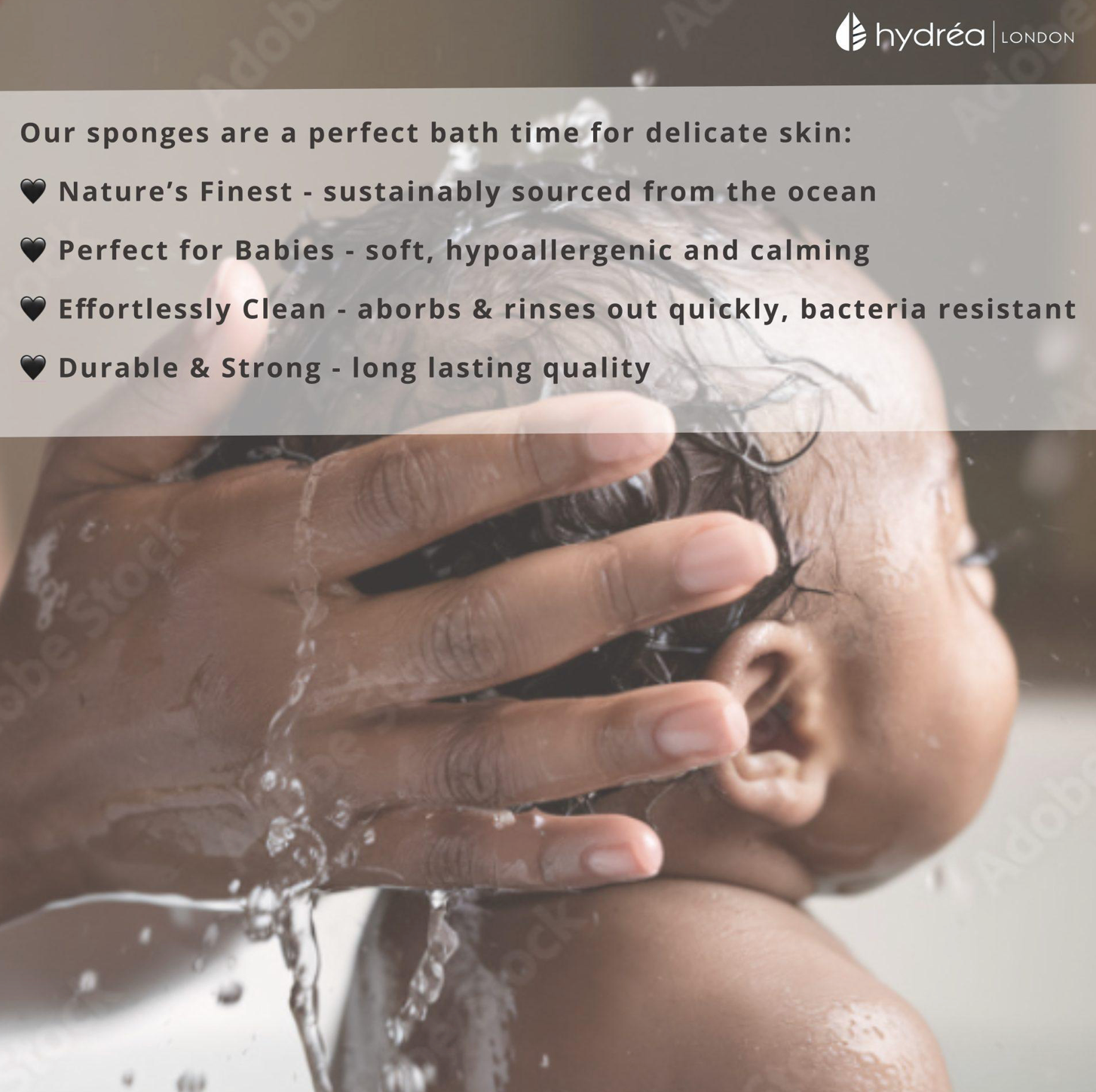 HYDREA LONDON BABY BLISS BED + BATH NEWBORN GIFT SET – BABY BRUSH + SEA SPONGE + BAMBOO WASH MITT