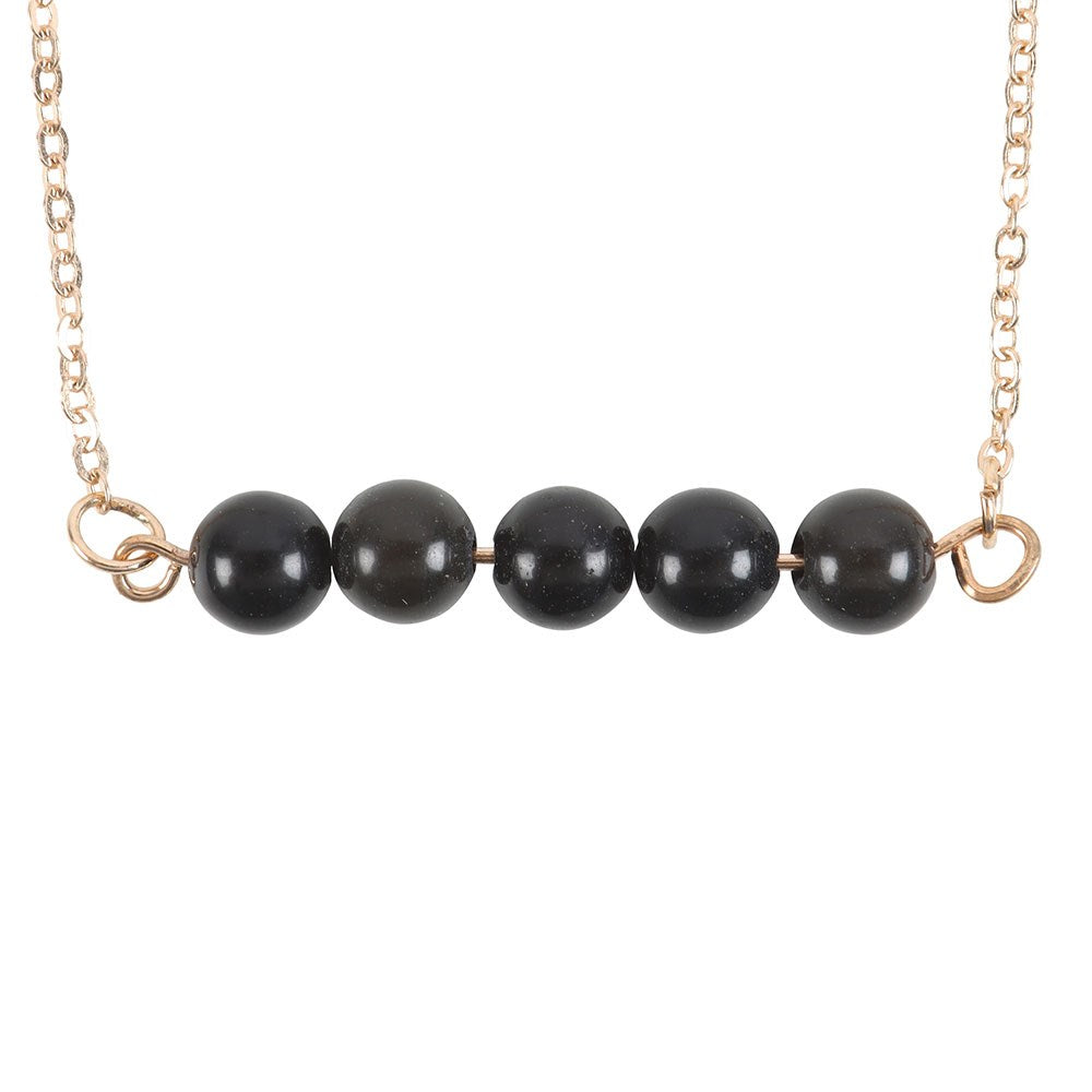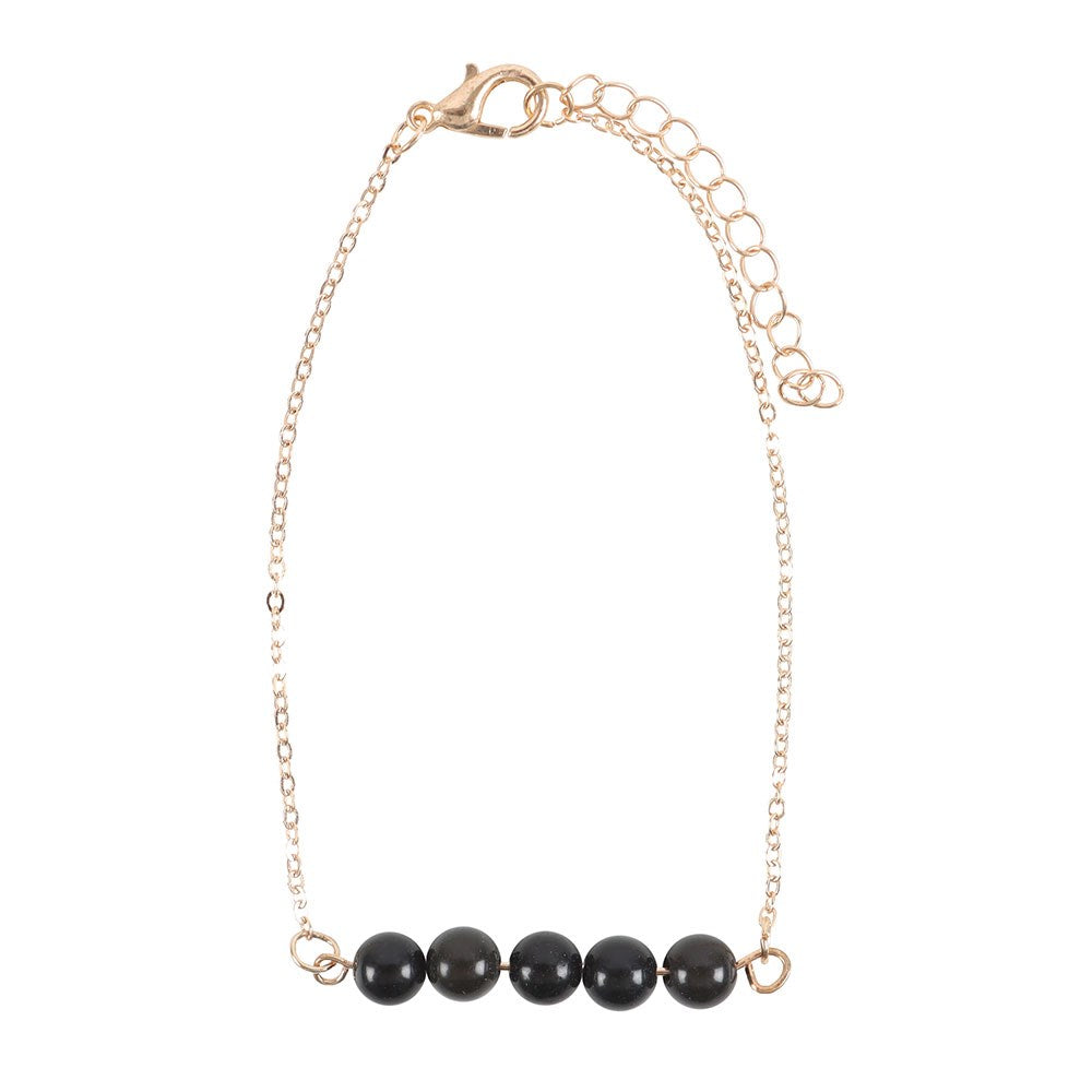 Carry the positive energy of crystal healing on-the-go with this beaded chain bracelet. Featuring 5 black obsidian crystal beads known for its grounding and protective properties, attached to a delicate yet durable gold-tone chain. Ideal for stacking or wearing individually for a touch of elegance to any outfit. Add a zodiac charm to the bracelet for a personalised touch (sold separately). Available as part of a countertop spinner stand with other crystal jewellery and in a set of 9 for top ups.