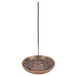 Eyecatching incense stick holder plate with an intricate Buddha design. This item has an antique copper effect finish and can hold one incense stick at a time.