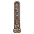 Antique bronze effect incense stick holder featuring the seven colours of the Chakra and a meditating Buddha. A striking and unique design that will make a great home decor ornament as much as a home scenting accessory.