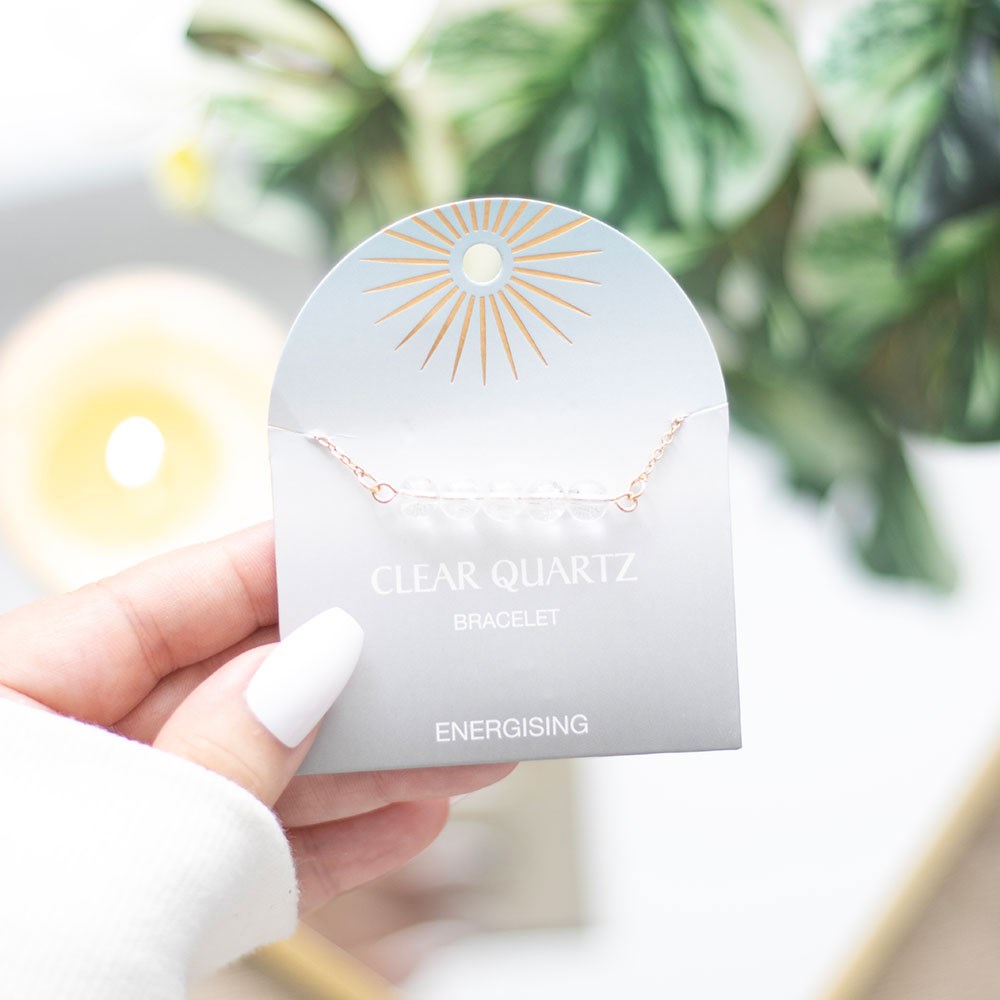 Carry the positive energy of crystal healing on-the-go with this crystal beaded chain bracelet. Featuring 5 clear quartz crystal beads known for its clarity and energising properties, attached to an elegant yet durable gold-tone chain. Ideal for stacking or wearing individually for a touch of elegance to any outfit. Add a zodiac charm to the bracelet for a personalised touch