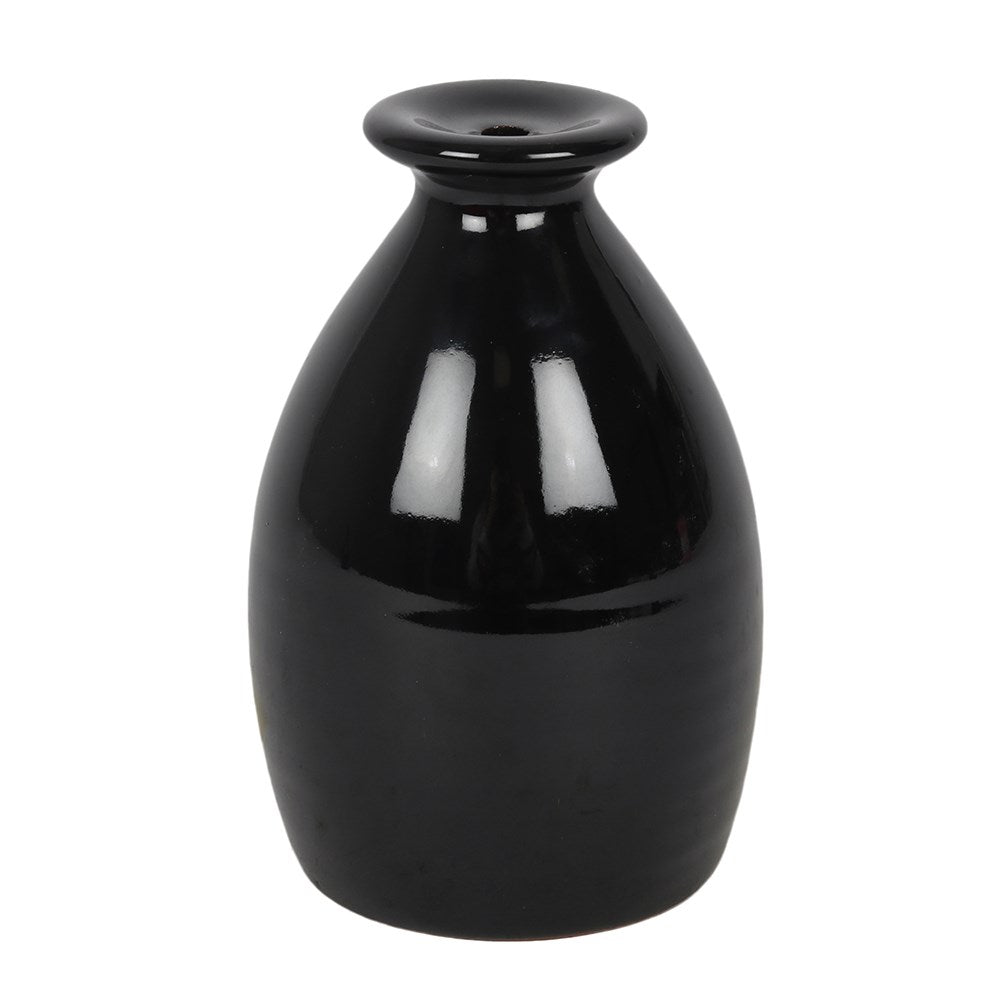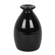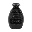 A black ceramic backflow incense burner with a rounded cocoon design. When a backflow cone is placed on top, smoke gently falls across a series of small tiers and pools below.