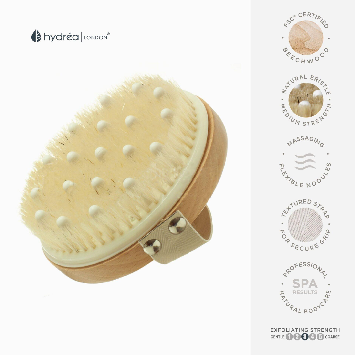 Discover the ultimate body brushing experience, to exfoliate, smooth and detox for beautiful, radiant looking skin. Consciously crafted with FSC® Certified Beechwood and combined with Ethically Sourced Natural Bristle and Flexible Rubber Massaging Nodules which work to naturally stimulate the lymphatic system to help release impurity build up.