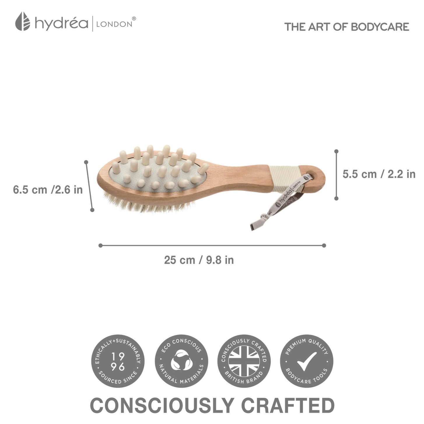 HYDREA LONDON DUAL USE BODY BRUSH NATURAL BRISTLE