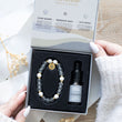 This friendship lava bead bracelet and essential oil gift set uses aromatherapy to enhance the metaphysical healing power of crystals. Crafted with natural clear quartz and lava beads, the bracelet serves as a diffuser for the included Chamomile oil, offering protection and emotional stability. The addition of the Celtic friendship knot charm symbolises eternal love, loyalty, and faith, making it an ideal gift for cherished friendships. Crafted with durable materials and packaged in a luxury gift box, this elasticated bracelet combines beauty and functionality, offering a thoughtful present for various occasions.