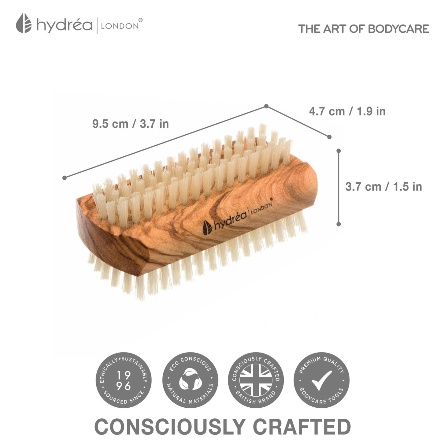 HYDREA LONDON LARGE OLIVE WOOD NAIL BRUSH NATURAL BRISTLE
