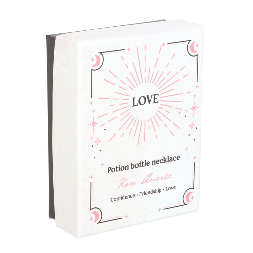 LOVE ROSE QUARTZ CRYSTAL CHIP POTION BOTTLE NECKLACE