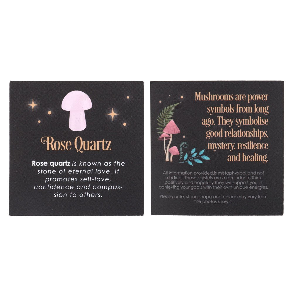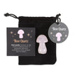 Harness the power of crystal healing with this Magical Crystal Mushroom crafted from polished rose quartz. This popular stone promotes self-love, confidence and compassion by fostering a sense of peace and harmony in the mind, body and soul. Comes in a drawstring bag for easy storage with a matching informational insert card. Due to its nature, stone may vary in size, shape and colour