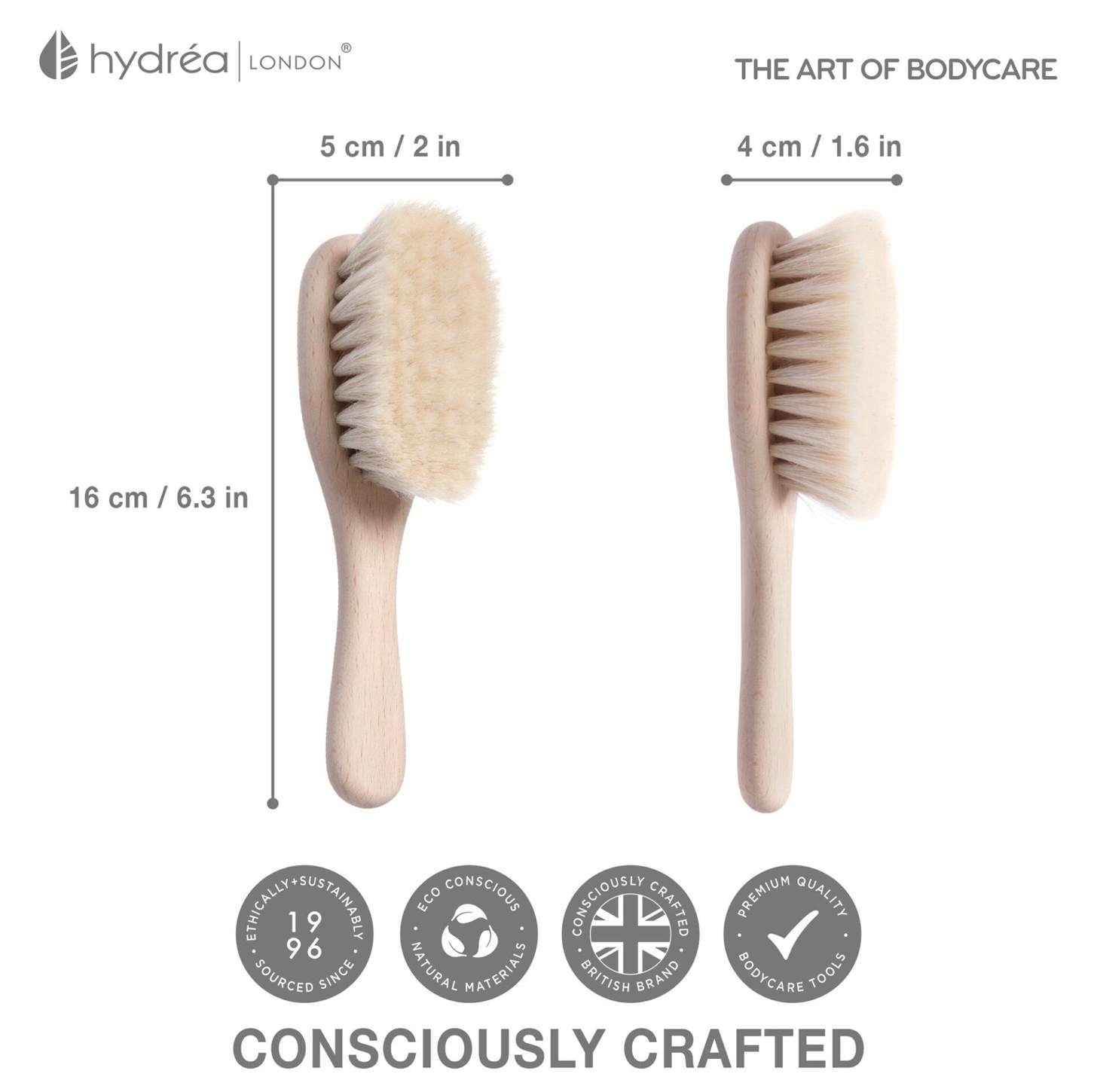 HYDREA LONDON NATURAL BABY HAIR BRUSH – FSC® CERTIFIED BEECHWOOD WITH ULTRA-SOFT BRISTLE