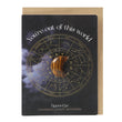 Remind someone how truly special they are with this 'You're Out of This World' greeting card. Featuring an intricate astrology wheel design and a beautiful crescent moon shaped crystal crafted from Tiger's Eye, this gift and card in one is designed to inspire confidence, vitality and motivation. Includes envelope. Blank inside for your own message.
