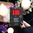 Typically a caster will write down their intent on a piece of paper the same colour as the candle and burn the paper in a fire safe bowl. All of our spell candles are solid colour all the way through (not dipped). Each candle has an approx burn time of 1 hour. Made from paraffin wax. Colour may vary slightly between production batches.