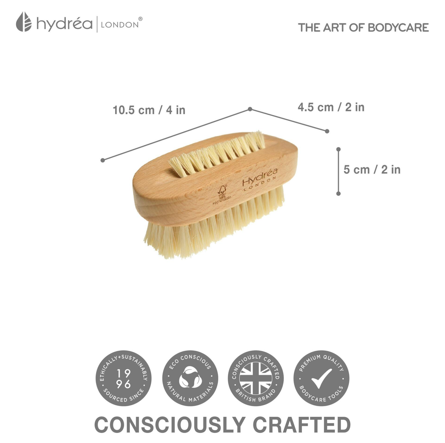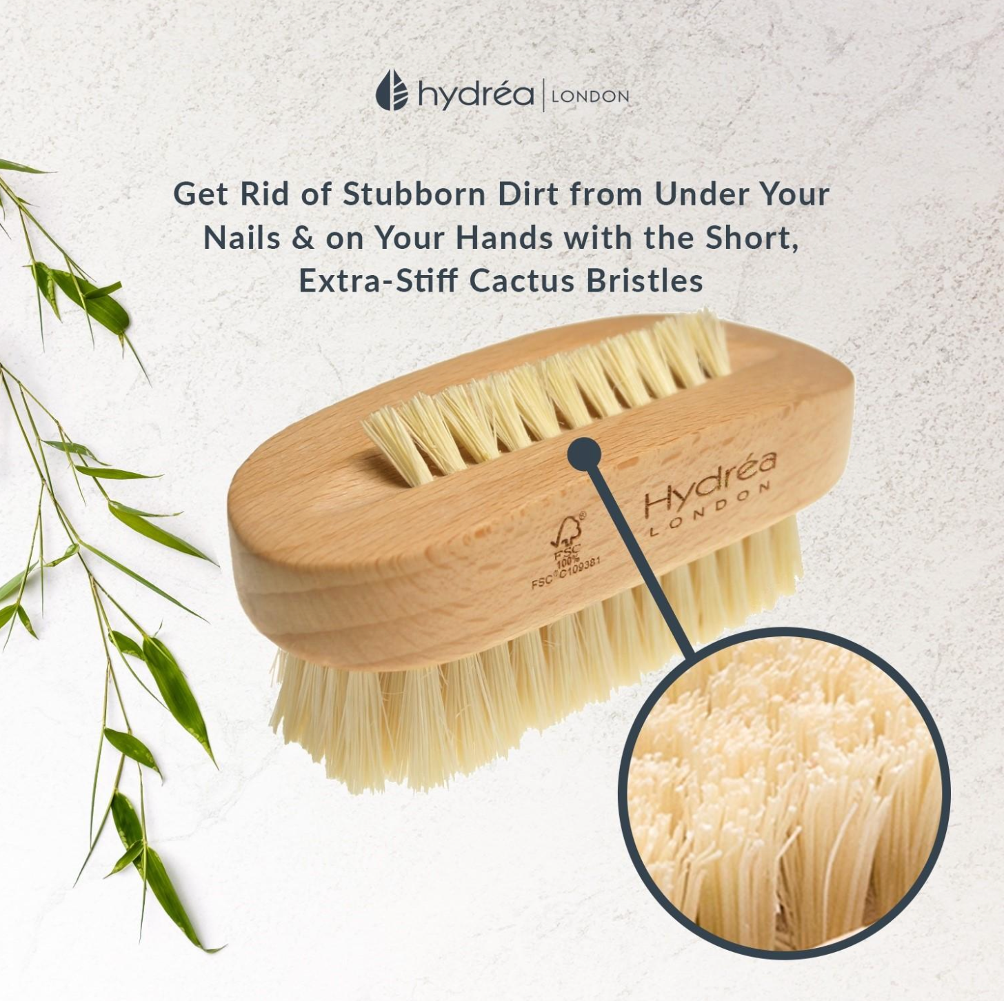 HYDREA LONDON PREMIUM DUAL SIDED HAND + NAIL BRUSH WITH CACTUS BRISTLE
