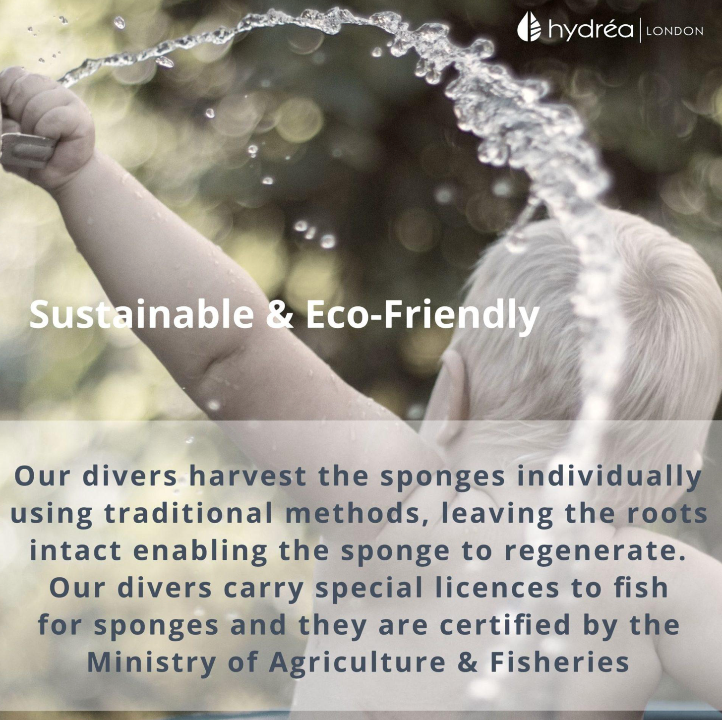 Hydréa London Sea Sponges are traditionally and sustainably harvested to ensure minimal disturbance to their environment. The sea sponges are carefully cut by hand by registered divers to preserve the vital root system to support the natural regeneration process of new, healthier, stronger sponges.