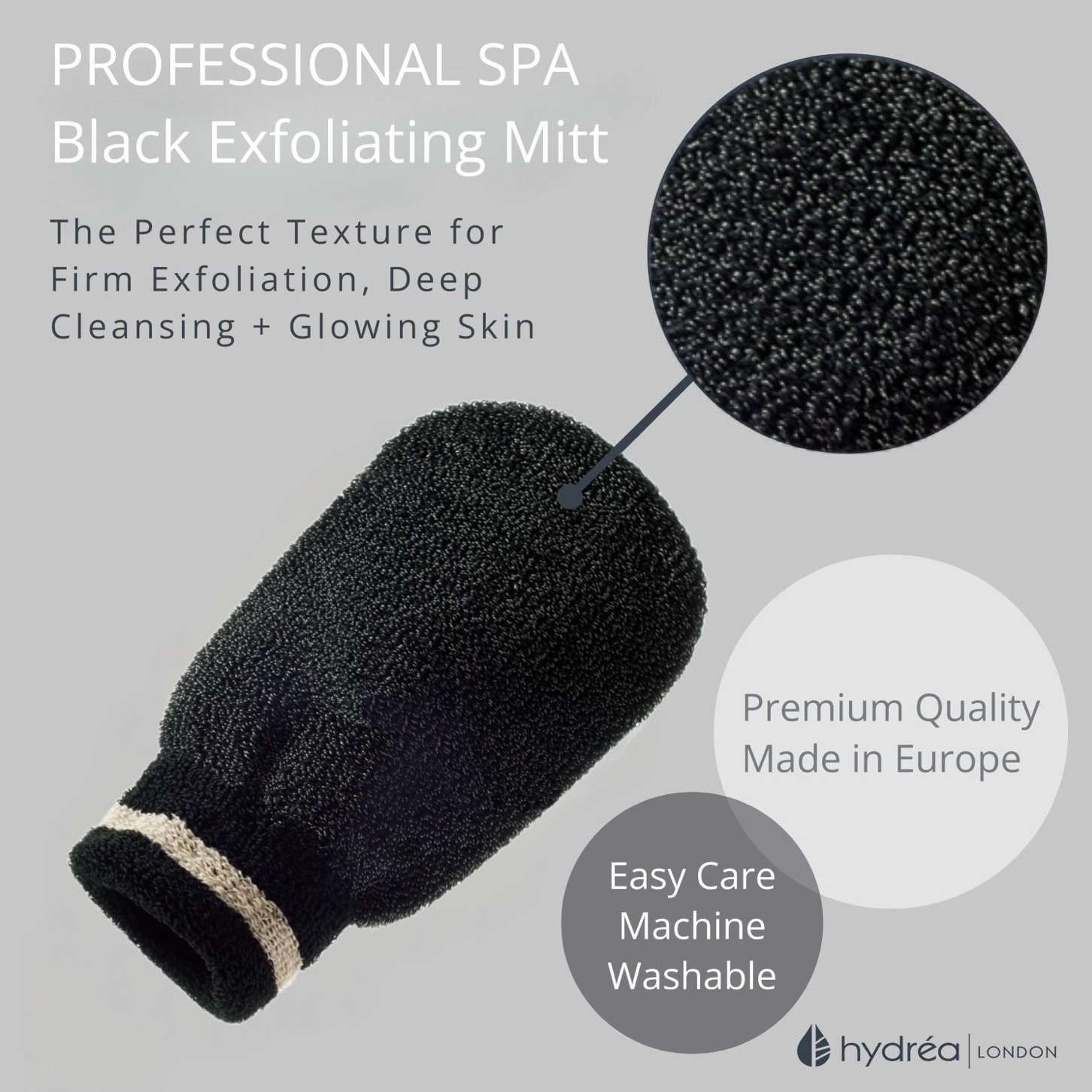 HYDREA LONDON PROFESSIONAL EXFOLIATING SPA MITT BLACK