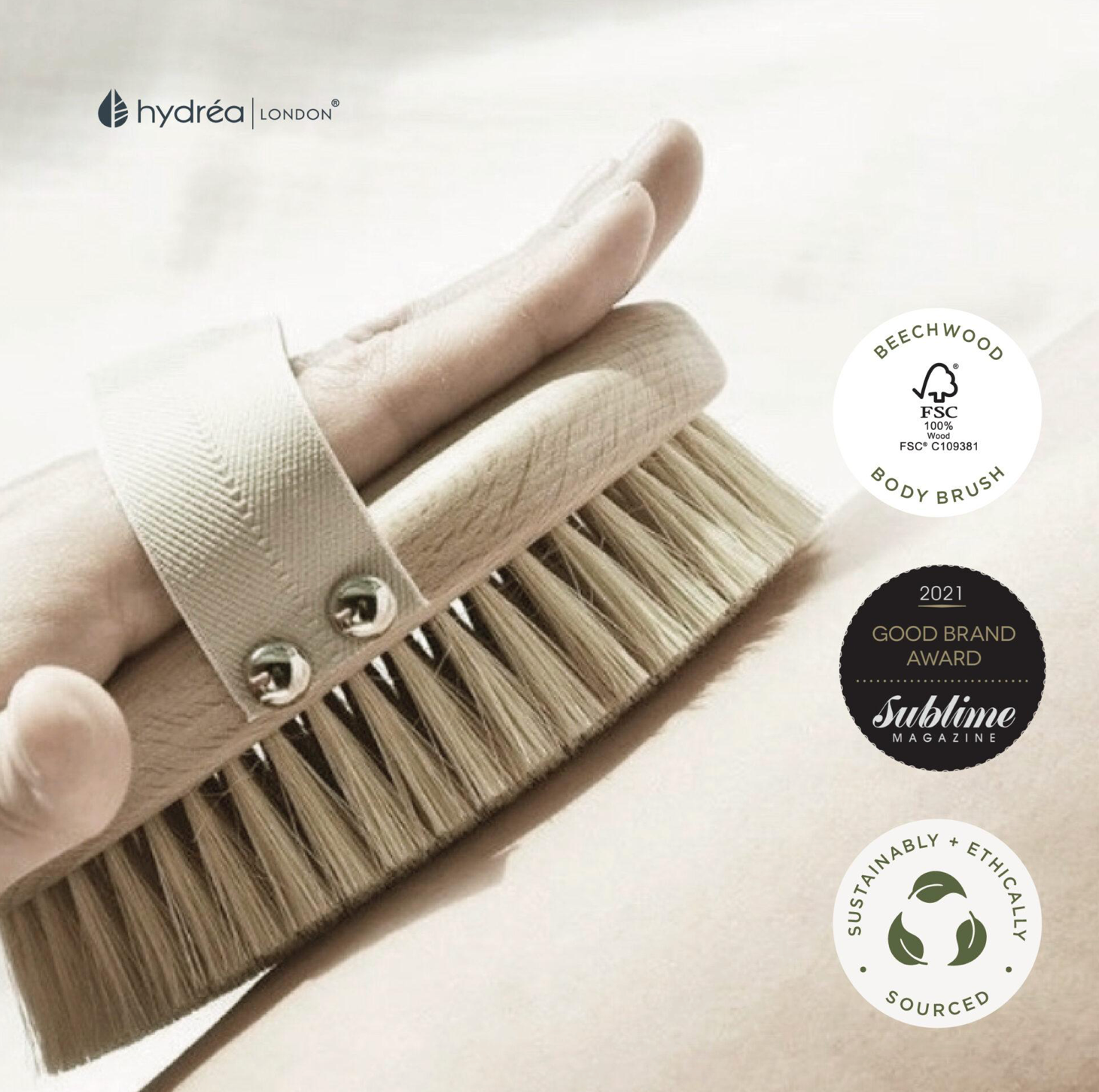 HYDREA LONDON PROFESSIONAL VEGAN DRY BODY BRUSH FSC® CERTIFIED BEECHWOOD WITH CACTUS BRISTLE FOR EXFOLIATION & DETOX