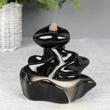 A simple yet beautiful backflow incense burner in a black ceramic flowing river design. When the cone is lit the smoke from the cone cascades downwards in a mesmerising waterfall effect to pool at the bottom. Beautiful to watch.