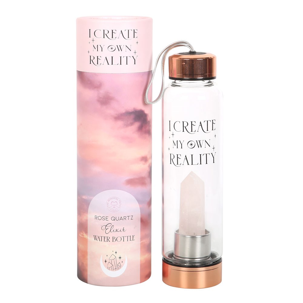 ROSE QUARTZ CREATE MY OWN REALITY GLASS WATER BOTTLE