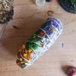 This smudge stick features Good Vibes Sage, a variety of White Sage that has been sustainably harvested and infused with positive intentions.