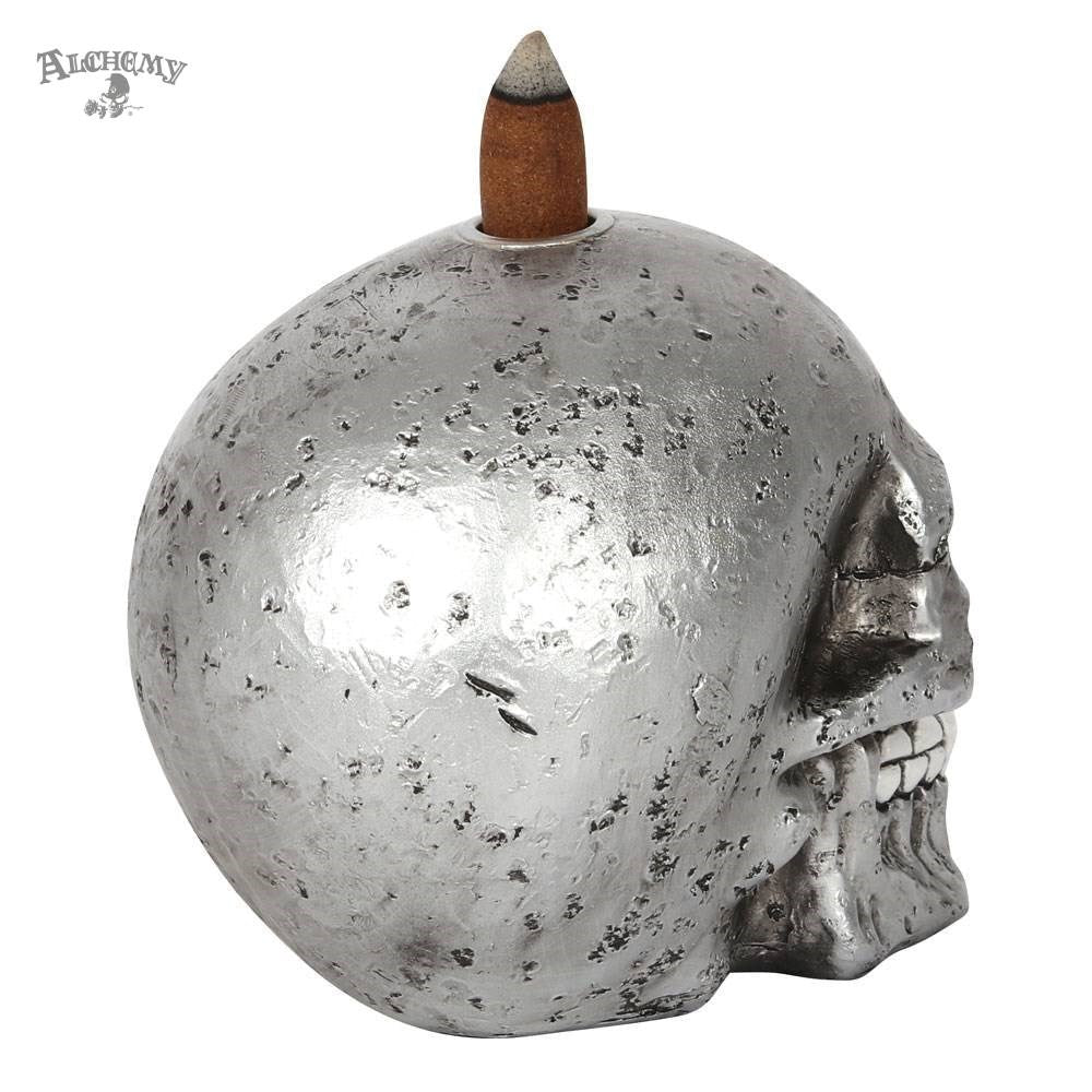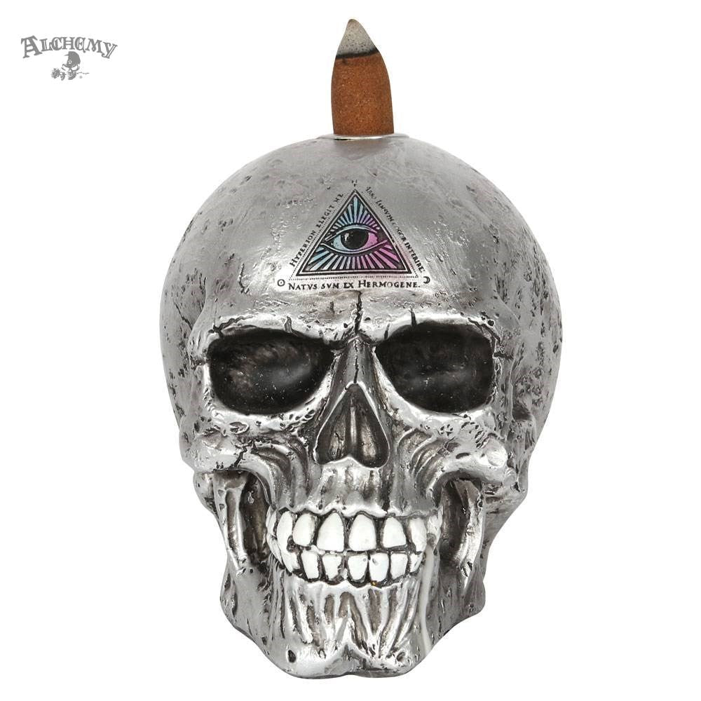 We have collaborated with the popular alternative brand, Alchemy Gothic, to bring their artwork to life in a highly detailed backflow incense burner. 'The Void' features a silver skull with an all seeing eye design. Simply place a smouldering backflow incense cone at the top and watch as mesmerizing swirls of smoke trail from his mouth.