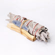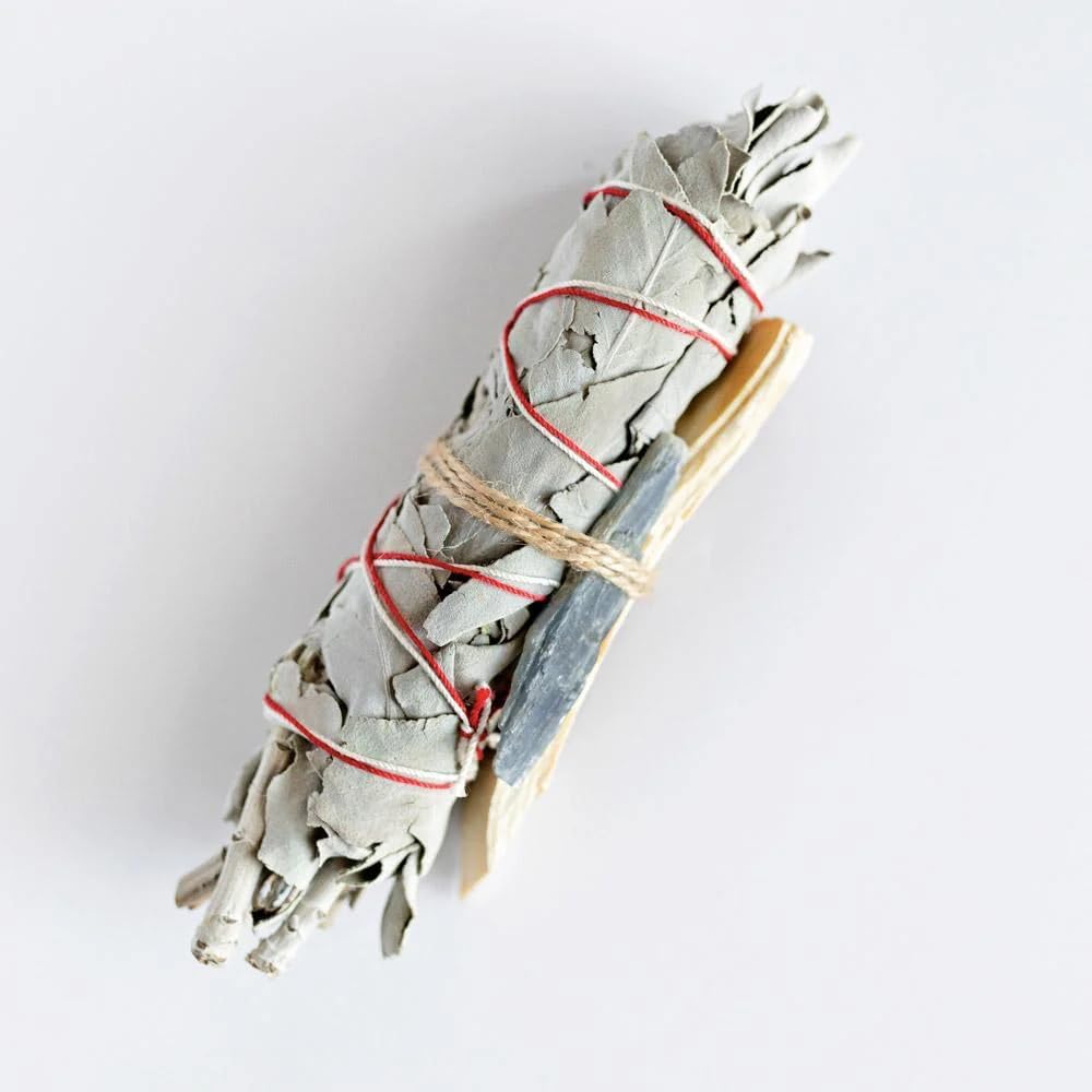 WHITE SAGE SMUDGE STICK BUNDLE WITH PALO SANTO AND BLUE KYANITE CRYSTAL, TRADITIONAL CLEANSING KIT